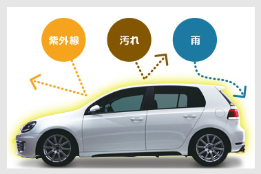 また、走行中の空気やホコリ、洗車での摩擦による塗装の劣化も防ぎます。