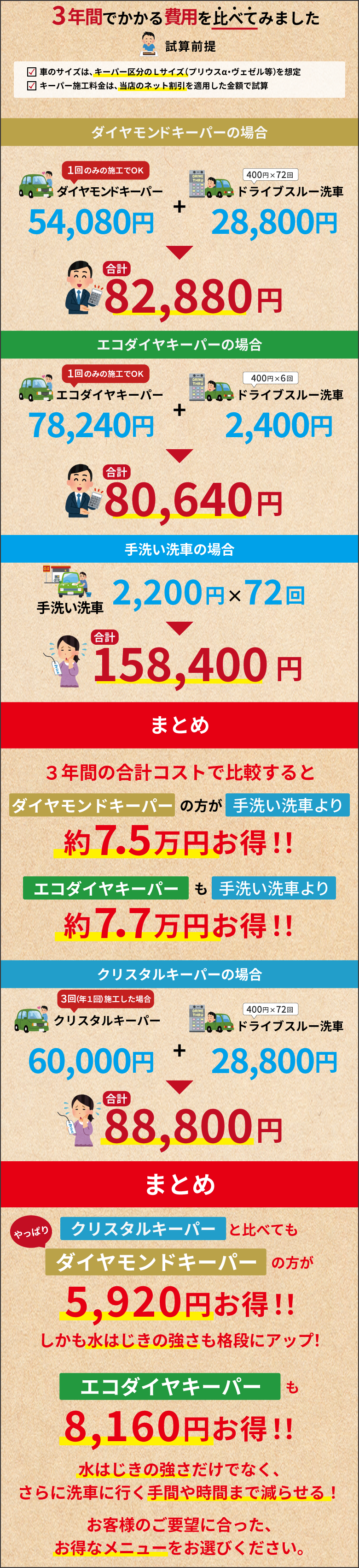 カーディーラーや車販売店のコーティング料金より断然お得!